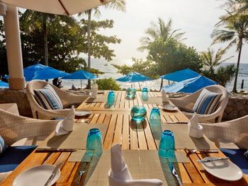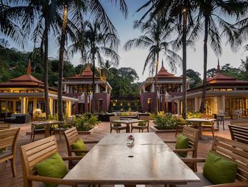 В обеденной зоне на открытом воздухе под тенью высоких кокосовых пальм подают блюда местной и западной кухни, а также блюда из морепродуктов. Кроме того, в ресторане Trisara Grill можно заказать приготовленные на гриле морепродукты, а в баре комплекса — легкие закуски и освежающие напитки.