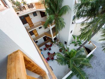 Отель очень красивый, трехэтажный. На территории есть небольшой садик с фонтаном, растут 3 высокие пальмы.