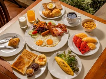 Indulge in the beauty of our tropical surroundings, complete with swaying palms and vibrant blooms. Cool off in one of our two sparkling swimming pools, perfect for a refreshing dip after a day of sunbathing or exploring the local sights.