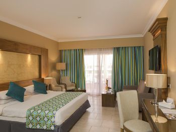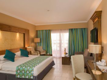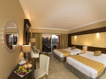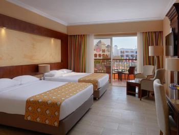 See view это вид на бассейн с которого идёт арабская музыка и это слышно в номерах, в ванной не очень чисто, ржавый туалет, душевая немного сломана, крепление в душе тоже ржавое, пляж находится через 2 отеля и это далеко, но есть подвозка утром до 5 вечера.