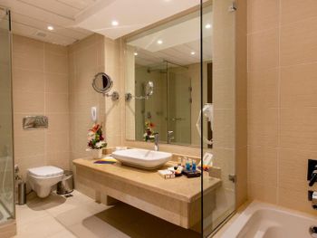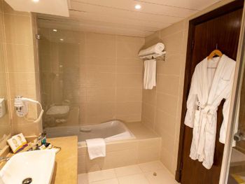 Приезжали на денек по делам и отдохнуть заодно, мы приехали рано утром и, несмотря на заселение в 15 00 нас заселили на 4 часа раньше, а это было просто замечательно потому что в 42 градуса очень хотелось попасть под кондиционер и сбросить тяжелые рюкзаки. Отдельное спасибо Ахмеду с ресепшн, очень выручил и добавил сразу много плюсов к восприятию отеля. Номер - просто отличный, по просьбе и халаты принесли, а уж как здорово встречать в отеле не душ, а полноценную ванну! Я была в восторге. Ну, и бассейн еще теплый, вода словно обнимает тебя. Класс.
