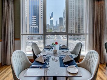 Выбрали отель по отзывам. Вроде оценка не плохая по отзывам. Планировали с женой и трехлетним ребёнком остаться на пару дней. За неделю до приезда мною было сообщено о необходимости номера для не курящих. Приехали среди ночи. На ресепшене сразу в глаза бросилась девушка в кожаной короткой юбке с двумя парнями, которые судя по всему снимали один номер. Пока оформляли нас, вышли ещё 3 таких девушек. После того как открыли дверь номера, все стало ясно куда мы заехали. Вонь от сигарет пытались сбить вонючим освежителем. Ковралан в номере мягко говоря был в ужасном состоянии. Страшно было ходить по нему даже в обуви. На ресепшене попросили поменять номер, пообещали сделать это с утра. Пока ходил на ресепшен, в лифт завалился в стельку пьяный тип, который не мог нажать свой этаж. Как оказалось в этом отеле есть ночной клуб. Среди ночи ехать было некуда, решили остаться до утра. Благо постель на вид была чистой. Также в номере была запертая дверь, как оказалось в соседний номер. Под утро проснулся от громкого стона какой-то п...... и за той самой дверью. В итоге сна не было. Решили хотя бы позавтракать, но и тут..... выбора нет. Всё что есть, не вкусное. Первые впечатления от Абу-Даби и в целом об ОАЭ были испорчены. Готов был сразу улететь обратно в Астану. На утро попросили вернуть деньги за следующий день. Пообещали. Вернут или нет еще неизвестно.