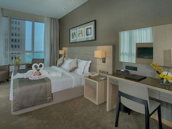 Выбрали отель по отзывам. Вроде оценка не плохая по отзывам. Планировали с женой и трехлетним ребёнком остаться на пару дней. За неделю до приезда мною было сообщено о необходимости номера для не курящих. Приехали среди ночи. На ресепшене сразу в глаза бросилась девушка в кожаной короткой юбке с двумя парнями, которые судя по всему снимали один номер. Пока оформляли нас, вышли ещё 3 таких девушек. После того как открыли дверь номера, все стало ясно куда мы заехали. Вонь от сигарет пытались сбить вонючим освежителем. Ковралан в номере мягко говоря был в ужасном состоянии. Страшно было ходить по нему даже в обуви. На ресепшене попросили поменять номер, пообещали сделать это с утра. Пока ходил на ресепшен, в лифт завалился в стельку пьяный тип, который не мог нажать свой этаж. Как оказалось в этом отеле есть ночной клуб. Среди ночи ехать было некуда, решили остаться до утра. Благо постель на вид была чистой. Также в номере была запертая дверь, как оказалось в соседний номер. Под утро проснулся от громкого стона какой-то п...... и за той самой дверью. В итоге сна не было. Решили хотя бы позавтракать, но и тут..... выбора нет. Всё что есть, не вкусное. Первые впечатления от Абу-Даби и в целом об ОАЭ были испорчены. Готов был сразу улететь обратно в Астану. На утро попросили вернуть деньги за следующий день. Пообещали. Вернут или нет еще неизвестно.