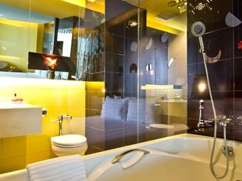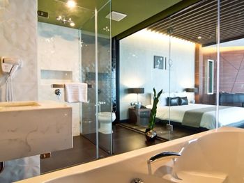 Полы просторных номеров этого дизайн-отеля устланы плиткой темных тонов. Во всех номерах есть кондиционер, гостиный уголок и собственная ванная комната с ванной.