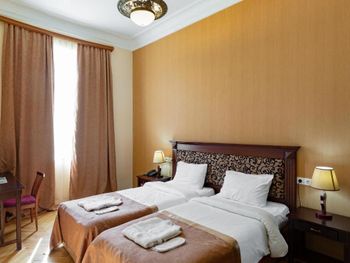 Исторический отель, расположенный напротив центрального парка Цхалтубо. Бережно восстановленные интерьеры. Зеленая и немноголюдная территория. Номера небольшие, но с хорошей отделкой и полностью исправным оборудованием, удобная кровать. Интернет работал без сбоев.
