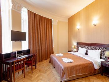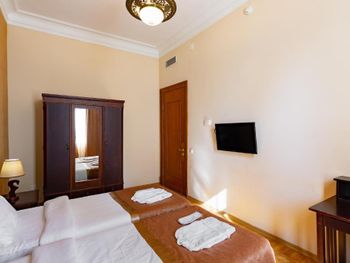 На мой взгляд цены завышены. Советский ампир конечно прекрасен, но нуждается в ремонте. В душе поддон закруглённый, а занавеска прямая, как результат - вода на полу. На балконе не помешали бы столик и пара стульев. Шкаф в номере наверное ещё из 50-х годов - двери не закрываются.