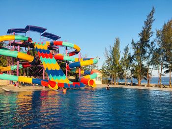 Аквапарк с горками платно, билеты приобретаются при входе в аквапарк или на ресепшн, примерная стоимость: при росте выше 1,4 м и взрослые - 100000 VND за человека, при росте от 1 м до 1, 4 м - 50000 VND за человека, дети ростом ниже 1 м бесплатно, но в сопровождении взрослого (платно). Эта стоимость включает: участие в мероприятиях у бассейна, использование стульев, зонтиков, гамаков, полотенец у бассейна.