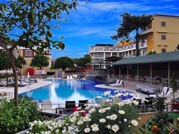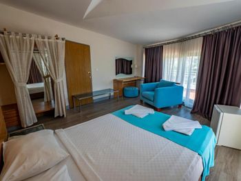 Курортный отель предоставляет для проживания 170 уютных номеров с самыми современными удобствами. С балконов номеров открывается вид на сад и далее море или горы на горизонте.