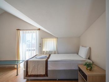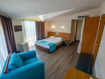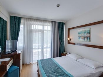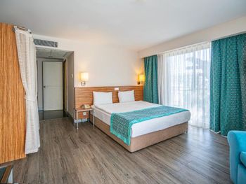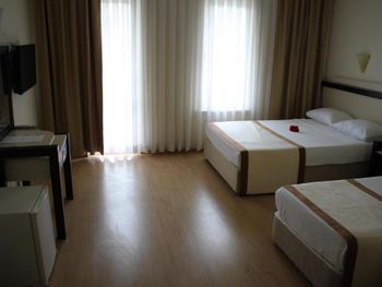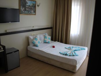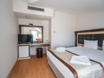 Нет возможности принимать оплату с карты в евро. На букинг посчитали цену в евро, платили с рублёвой карты, но в отеле сказали, что могут провести операцию только в лирах, произошла двойная конвертация: из лир в евро и из евро в рубли: в результате сумма списалась больше на 1200 р. Обидненько. Около кровати нет розеток - не удобно. Номер достаточно уставший, хоть и чистенький. Сейф - 1$ в день. Пляжное полотенце - в аренду 1$ за полотенце, депозит 10$. Утюга нет, можно только отдать одежду гладить, одна вещь 2$. Вода в бассейне достаточно холодная в сентябре, но привыкаешь.