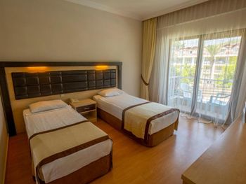 Номера старые и грязные. Вентиляция работает шумно, кондиционеры работают в режиме "попробуй поймать нужную температуру". Ночью приходилось вставать то выключать, то включать, сам кондиционер этого делать не умеет автоматически. Ввиду устаревшей системы. Полотенца не выдают, нигде, никак. Сказали идти в магазин и покупать самим, это меня удивило. Сколько раз были в Турции такое было впервые(уже 6ой раз отдыхаем в Кемере). На картинках booking, показано слишком красочно. Wi-Fi нет на территории, хотя написано что есть.