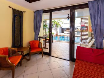 Комфортное размещение для большой семьи. наличие недорогого массажного центра на территории Хороший завтрак Отличный платный ужин (цена\\качество) получается вкуснее и дешевле чем в ресторанах в округе. Каждый день чистят бассейны. Тщательно следят за чистотой на территории. У бассейнов есть санузел и по территории 3 душевых и мест для омвения ног после пляжа. пляжные коврики предоставляются. Депозит можно использовать во время проживания на услуги массажа или ресторана, а также заказа еды в номер, а также в баре у бассейнов.