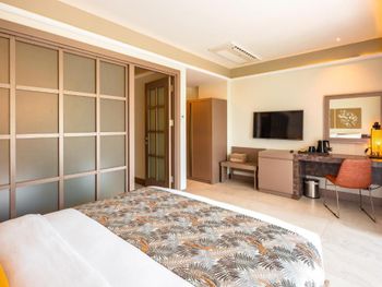 Очень удобная локация для семьи с детьми. Ухоженная территория и классные бассейны которые чистили каждый день. На территории есть массаж и куда-то выходить не надо было, массаж хороший и цены как и на улице. Кухня в ресторане вообще отличная на любой вкус. Номера убирали каждый день но постельное белье вроде только один раз поменяли. Душ не мешало бы заменить, но отдых этим не испортился. Учитывая стоимость проживания все просто супер. Спасибо большое, если поедем ещё раз, то выберу именно этот отель без сомнения.