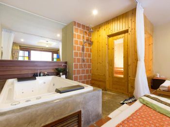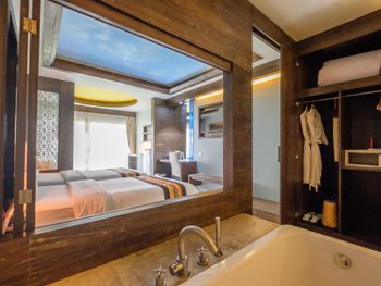 задержали заселение на пол часа. номер находился в самом конце комплекса где вечером не было толком освещения, по дороге в номер стоит дерево у которого не обрезаны ветки , находящиеся прям на уровне головы .опасно для глаз ! особенно ночью . при заезде в шкафу висел халат с дырой размером с голову😳. воду забыли поставить. свет на кухне не работал банка где должен быть гель для душа была пустая , но когда его налили , он вообще не мылился, так что берите свой гель для душа . после того , как обратились к персоналу на счёт все этих проблем , сразу все исправили . кондиционер очень сильно тек, что оставлял озеро воды у кровати , его попытались починить , но хватило на пару дней и потом он снова начал течь ) завтрак из всех отелей где мы были был хуже всех ,маленький выбор и очень однообразный ( практически вся еда ориентирована на Тайцев . у нас должна было быть кровать кинг сайз но оказалось что были просто сдвоенные односпальные кровати и в центре было больно лежать из за матрасных швов .