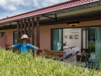 Были на новый год 2020. Брали номер ДЕЛЮКС. В Тае 4-ый раз, обычно позитивны ко всему. Но тут явное не соответствие 4-м звездам и описанию, даже не понятны восторженные отзывы. Фото мало соответствуют действительности, территории у отеля почти нет, только небольшой хлорный бассейн и болотце возле столовой. И отель находится не в "тихом оазисе", а просто в переулке от основной дороги, кроме того рядом стадион с тайским боксом и практически через день куча транспорта колесит мимо номеров отеля. Завтраки посредственные, лучше не брать, а завтракать в уличных кафе -и вкуснее и дешевле. Выдают 2 банных полотенца и 2 мини полотенца для рук, говорят -больше не положено! Это в 4-х звездах -то! И кому-то (из отзывов) настолько повезло, что им дали даже пляжные полотенца! (??). Шампуни-гели не пополнялись за все 11 дней. Уборка посредственная, пододеяльник был с дырками (делюкс 4 звезды!!). Все делюксы находятся в одноэтажном здании и выходы - на болотце с травкой, отсюда иногда безумное кваканье лягушек и мелкие комары. У отеля заявлено: Wi-fi в общественных местах, вот на это и ориентируйтесь, т.к. в номере будет тормозить. Из положительного: погода, конечно, в это время года - кайф)) и море-парное молоко). Кондиционер шумноват, но работал исправно. Есть большой холодильник, халат и тапочки. Один халат при последней уборке куда-то исчез и с нас хотели снять денег за него, но мы не дались)). С детьми этот отель вообще не подходит - очень далеко до моря, пересекать 4 проезжие улицы, где никто не уступает дорогу. Мы брали байк, и нам было все равно какое расстояние. Выводы: возьмите какую-нибудь трешку ближе к морю и будет вам счастье. Хорошего отдыха!