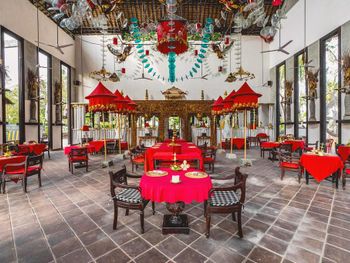 В курортном отеле Tugu Lombok работает уникальный ресторан. В отеле работает несколько ресторанов. Гости могут пообедать в любом месте в саду, в частной хижине или даже на пляже.Парам особенно нравится расположение — они оценили проживание в этом районе вдвоем на 9,3.Расстояние, указанное в описании, рассчитано с помощью © OpenStreetMap