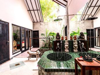 Отель Tugu Lombok расположен рядом с 18-луночным полем для гольфа, зелеными полями и пальмовыми плантациями. Отель оформлен в традиционном стиле и украшен произведениями искусства.