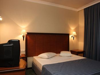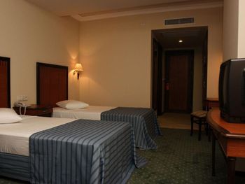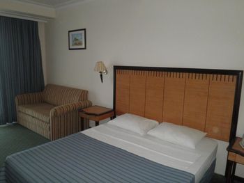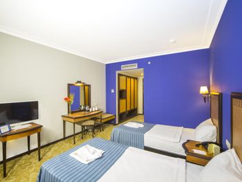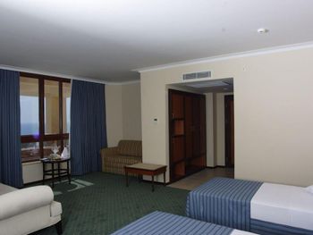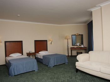 Номер был расположен отлично. была большая терасса, но не было горячей воды и унитазный бочек не работал нормально, холодильник не работал, пульт телевизора не переключал, одеяло теплое не дают. Персонал не решал проблему, только делали вид. Похожая ситуация по всей гостинице. Многие постояльцы жаловались на условия. Приходилось мыться ходить в хамам, а в туалет на 1 этаж.