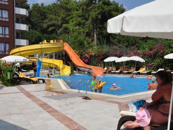 Шикарный пляж. Много свободных лежаков. Алкоголь круглосуточно. Ракы 18-летние хорошего качества . Вкусные коктейли. Разнообразная еда. Зелень , цветы, деревья волшебные. Пальмы и сосны рядом. Достался номер со сказочным круговым панорамным балконом , видом на море, в 100 квадратных метров, с лежаками и плетёной мебелью. Сам номер тоже большой, кровати удобные, в душе всё работает. Но сначала дали меньше и с видом на лес, а не тот, что оплачивали. Ходили, меняли без доплаты. В целом , всё понравилось. Цена-качество.
