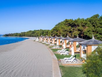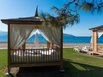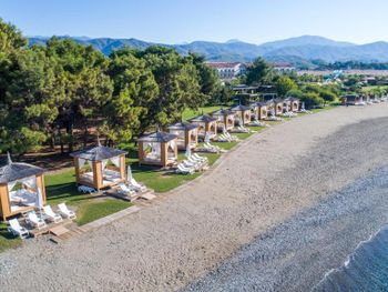 Начну с начала. Отель организовал трансфер от а/п Даламан, спасибо. За 50 Евро можно было бы организовать более приличную машину…машина из серии киа, рено. Заселение: ждала номер ровно час, заселили всех, кто приехал после меня. На мои вопросы, что с номером, ответ был-технические неполадки. На дальнейшие вопросы (кондиционер или туалет сломан, номер не убран, это же технические неполадки?), ответом мне было молчание…После еще нескольких вопросов на более повышенных тонах, поменяли номер (которого я не видела) и заселили в начале 5-ти вечера (официально заселение 14:00). Забронировала заранее beach cabana (60 евро) по электронной почте, Ксения, на guest relations, подтвердила бронь, все рассказала, забронировала несколько ресторанов на ужин. Ксении, спасибо! Далее-интереснее. Санитайзера (даже малюсенького) в номере нет, хотя они есть на территории отеля (в магазине их тоже не найдете). Простынь с дырками, подушки крайне не удобные (для кого это важно, как для меня). С утюгом тоже пришлось танцевать ритуальные танцы, крутить-вертеть, в общем-включался и выключался по своему усмотрению. Вай-фай подключился только после обращения на ресепш, на пляже ловит плохо, периодически слетает, для полноценной работы на ноуте не хватит. Открытием для меня была работа in room dining menu (нигде отметки об этом нет), работает с 22.00 до 12.00 и это за плату, достаточно высокую, на мой взгляд. Т.е. в период пандемии, вечером после перелета, захотите покушать в уединенной атмосфере, не получится. Полнейший бред! Ночь, шумоизоляция отсутствует напрочь, музыка орет до 23:30, дверьми хлопают, у соседей в 5 утра или раньше заорал ребёнок, да так, что ощущение, что у меня в номере этот ребёнок. Ну есть же зоны в отеле, с детьми и без….сделайте нормальную шумоизоляцию и к отелю не будет нареканий. К еде претензий нет, голодным точно не останетесь. Условные заслоны у еды, никто ничего не накладывает Вам, сами берете, в общем все ковидные ограничения-условная видимость.