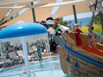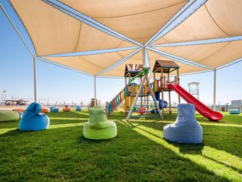 детский бассейн под тентами с горкой. пляж, красивая территория. иногда встречался приятный персонал. очень классная кофейня с закусками и вкусным кофе . приятный контингент , 85% англоязычная публика в основном семьи с детьми.
