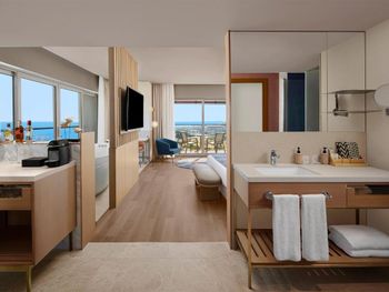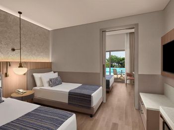 Это был наш лучший отпуск за всё время. Отель продуман до мелочей, зоны с номерами для взрослых отделены от зон с детьми — очень удобно. Номера и уборка: жили в стандартном номере с видом на бассейн и море. В номере чисто, уборка ежедневно, даже балкон мыли. Питание: шведский стол — отличное качество, всегда разнообразно и вкусно. Напитки можно взять самому, но официанты обслуживали очень быстро. Пляж и море: чистое и тёплое море (были в конце мая), приятный песок. На пляже работает персонал — можно заказать напитки и полотенца. В барах большой выбор напитков. Активности и спорт: есть теннисный корт, гольф, футбольная площадка, тренажёрный зал. По утрам проходят групповые занятия (йога и др.). Вечерние развлечения: с 20:00 до 21:00 шоу для детей, после концерты для взрослых. Часто проходят квизы на английском языке. После 22:00 — живая музыка в барной зоне, атмосфера отличная. Зоны отдыха: есть отдельные зоны с гамаками для отдыха после обеда. В холле днём часто играет живая музыка, иногда её переносят к бассейну. SPA: на нулевом этаже — спа, турецкая и финская парилки, холодный бассейн, массажные процедуры. Водные развлечения: на пляже предлагают водные активности — гидроциклы, парашюты, яхты. Попробовали почти всё — очень понравилось. Также делают видео с дрона. A la carte рестораны: есть возможность поужинать в отдельных ресторанах (не шведский стол). По программе All Inclusive — можно бесплатно посетить 3 из 6 ресторанов (по предварительной записи). Кинотеатр: есть небольшой кинотеатр. Мы попали на финал Лиги чемпионов, который показывали на большом экране — получилось очень атмосферно. Совет: знание английского — большой плюс, все конкурсы и активности проходят на английском.