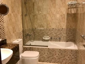 Забыли положить полотенца, не было ни одного на весь номер. Пару раз за вечер срабатывала пожарная сигнализация. Очень шумный кондиционер включается с таким грохотом как будто начинается лавина в горах. Главное что не понравилось: при заселении с меня почему-то взяли депозит 500 дирхам.