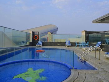Приехали поздно ночью, заселили быстро. Утром обнаружили, что в номере - часы не работают (новый отель!), в холодильнике не закрывается морозильная камера, так как льда столько, что ощущение- холодильник не размораживали и не мыли год, полотенца и моющие средства на одного человека, обещанной питьевой воды в бутылках не было. Розетка у кровати не работала. Попросили адаптер, нам порекомендовали купить в соседнем магазине (нормальный бизнес!). Причем, мы не первый раз отдыхаем в Дубае и всегда, во всех отелях предоставляют 1-2 адаптера во временное пользование.