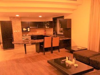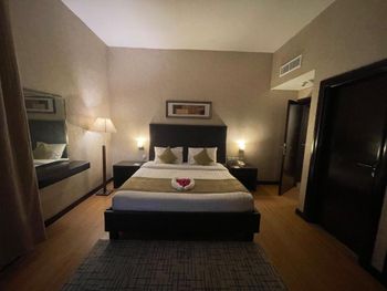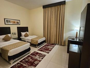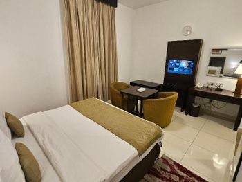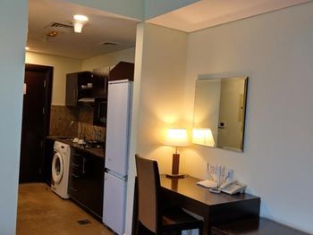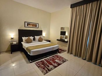 Отличное расположение, рядом, метро, остановки, супермаркеты, кафе. На втором этаже бассейн, с лежаками и столиками. Номера большие, с хорошей звукоизоляцией, со всеми удобствами, кухня со всем необходимым- плита, чайник, микроволновка, вся посуда. Персонал отзывчивый, если, что то нужно, быстро все принесут, уборка каждый день. На ресепшене, можно заказать экскурсии или поездку в пустыню, цены дешевые. Русских почти нет, Трансфер на пляж Альмамзар в 10-30. Рядом с метро супермаркет, там можно купить сувениры и магнитики, в несколько раз дешевле чем в том же моле.