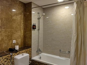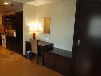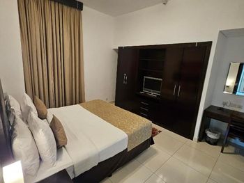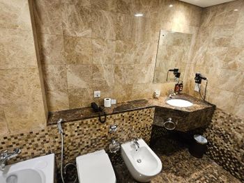 Брали апартамент, с мини кухней итд. Комната сырая, маленькое окно, сто лет не открывался, когда открыли посыпался мусор, нету балкона, шторы грязные, на полу один грязный коврик 1,5х2м, полы в некоторых местах липкие, сами вытирали влажной салфеткой, телевизор как в 2000-х годах, ложки, вилки, чашки, тарелки сто лет не мылись, ванна тоже грязная и старая, в раковине нету даже круглой решетки(сеточки). По приходу в номере не было даже полотенец, не было ни пакетиков чая, ни воды, не работала газ.плита, ножи тупые. Уборка номера ни была ни разу за 6 дней, только мусор выносили накопившийся, кровать не кинг сайз, а 160см шириной, для двоих эт оч мало, плюс между лежал ребенок(2г). Одна туалетная бумага которая быстро закончилась, так как есть маленький ребенок, потом пришлось лично идти и просить дать бумагу, одноразовые шампунь закончился в тот же вечер, их не стали просить. Короче говоря гостиница полный отстой, подходит чисто чтоб переночевать. Жалко потраченных денег!