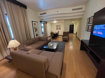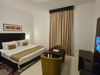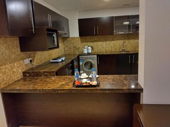 Одни плюсы: огромный номер, балкон с видом на Буршхалифа, чистота, наличие посуды для приготовления еды. Рядом метро, автобусные остановки, торговый центр.