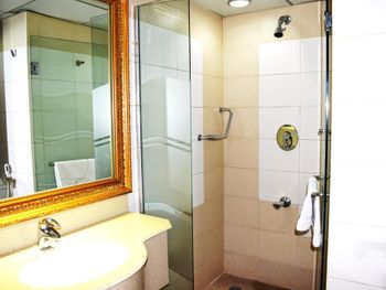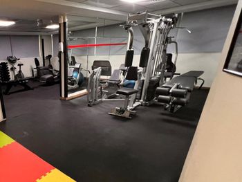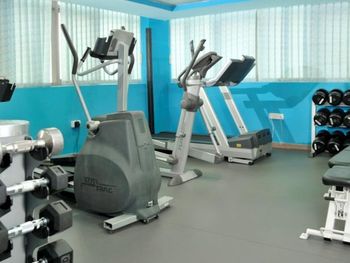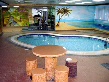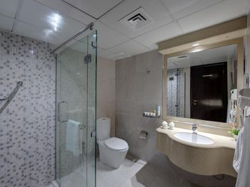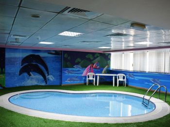Сразу хочется отметить, что вся мебель в номере старая, но пользоваться конечно можно. В ванной комнате была душевая кабина, которую, скорее всего, вообще никогда не чистили: были сколы на плитке, грязь и разводы, которые не убирали во время нашего проживания. Спа-зона сильно разочаровала: детский бассеин, отдельные (по законам Шарджи) зоны с маленькой сауной. Помещение сауны действительно приспособлено только для одного человека, больше там разместиться просто не сможет. Спа-зона не работает на постоянной основе (и только до 18.00): необходимо заранее заказывать ее, чтобы персонал нажал все необходимые кнопки. Тренажерный зал очень маленький, большая часть электронных систем не работала (беговая дорожка, эллипс), техника древняя и, конечно же, не забываем, что находимся в Шардже, поэтому у женщин и мужчин разное расписание тренировок.