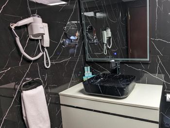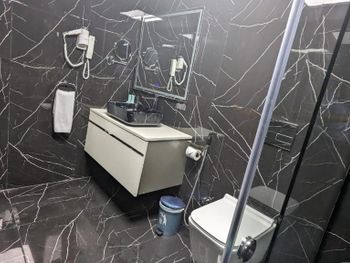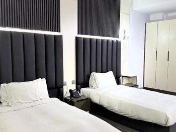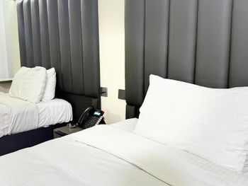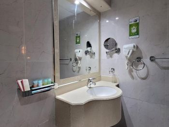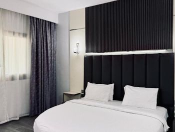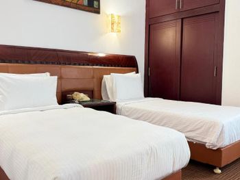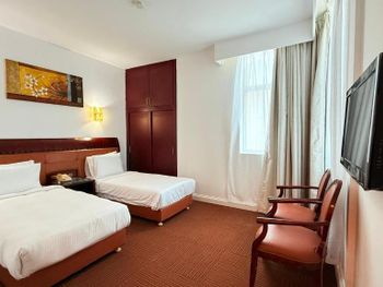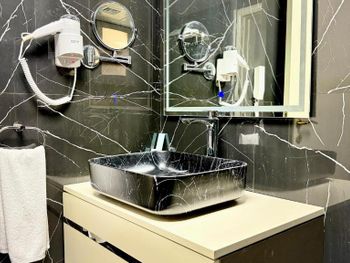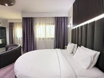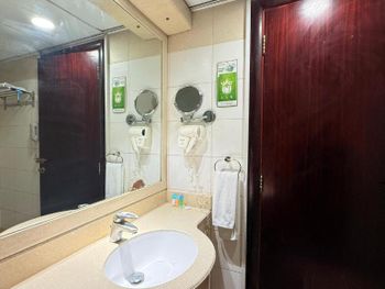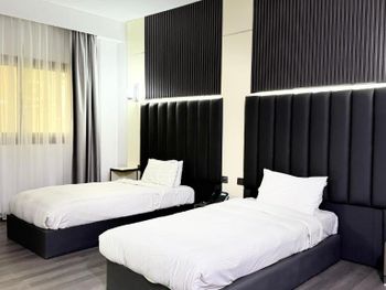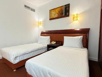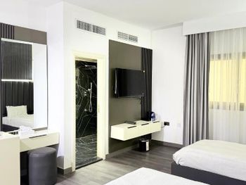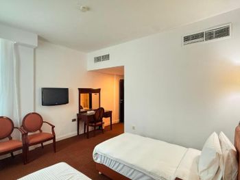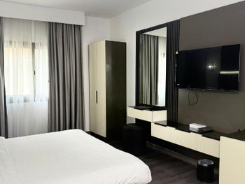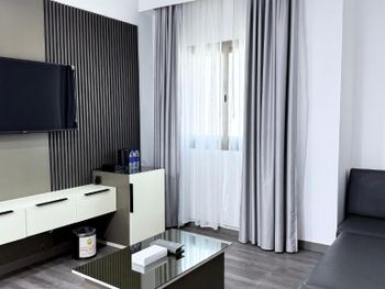 Таксисты , несмотря на счётчик нагло требуют большую сумму и легко можно попасться .А отель не так далеко от аеропорта и если бы был трансфер ,то было бы отлично.Мне обещали забрать с аеропорта,, но никто не встретил Хорошо,что скачала приложение букинг и с него позвонила в отель,где сказали водителя нет,берите такси Номер был Делюкс с кровать Кинг сайз,на самом деле оказалось две узкие кровати,разделенные тумбой когда понадобилось звонить на ресепшен из за неработающего телевизора и фена ,выяснилось,что телефон тоже не работает! В довершение лампа на прикроватной тумбе,которую я захотела включить ,с треском сгорела и заблокировала все резетки.Пришедший( улыбчивый) електрик так и не смог вставить адаптер для телефонной зарядки в сеть,я вынуждена была в 11 ночи сидеть на ресепшене ,ожидая зарядки телефона,с мокрыми волосами( помните про фен?).Окна номера выходили на ужасный дом напротив и близко Номер чистый,но немножко подертый.кровать старая ,скрипучая ,для маскировки покрытая двумя матрасами. Правда ,утюг , микроволновка и чайник работали.Персрнал- девушки очень приятные ,ну и електрики тоже.расстроили траты по такси.просто букинг пообещал в письме,а отель типа ни при чем,вам , мадам,дешевле будет такси.
