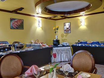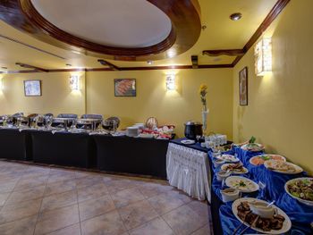 Завтраки в отеле достаточно разнообразные: свежие овощи и фрукты, гарниры, блины, выпечка и напитки. Персонал дружелюбный, но ненавязчивый. Из плюсов хочется отметить удобное расположение отеля: он находится прямо напротив торгового центра Mega Moll, на нижнем этаже которого есть пункт обмена валюты и большой продуктовый магазин с оптимальными ценами. Также по навигатору можно за 20-25 минут дойти до ближайшей остановки общественного транспорта, которая называется Аль-Джубейра (или воспользоваться такси от 13 до 20 дирхам) и отправиться оттуда до ближайшей станции метро или напрямую в Абу-Даби. Для туристов, которые планируют часто ездить за пределы Шарджи (в Дубай, Дейру, Абу-Даби), не рекомендуем это расположение отеля - лучше забронируйте в самом Дубае или Дейре (переплата будет несущественной, по сравнению с вашими затратами на общественный транспорт и такси).
