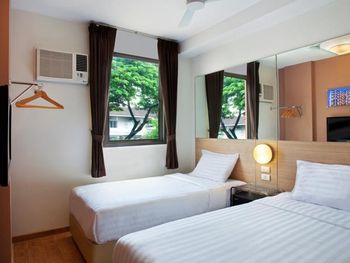 Очень маленький номер. Даже чемодан нет возможности открыть. Только на кровати. Сервис близок к нулю. При таком большом номерном фонде раньше 14:00 не заселяют. Готов номер или не готов даже не проверяют. Просто 14:00 и всё. На двоих дают один ключ-карту. Чтобы взять второй - нужен депозит 200 Батт. Для сетевого отеля как-то стрёмно.