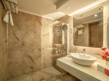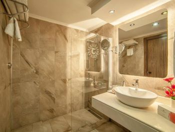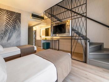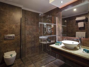 Отдыхали на select villa ( номера повышенной комфортности) конечно прекрасно что отдельный бассейн и ресторан - островок спокойствия в этой гостинице( во всех остальных местах отеля - обычный турецкий отдых - ор, крик!! Бассейн хороший - не глубокий и для детей отлично подходит! Клининг просто беда ничего не моют не убирают, криво заправляет кровать, - по приезду начатый рулон бумаги загнутый на конце а в душе начатые бутыльки шампуня! Все сметается на балкон там и оставляется. Ресторан который прикреплён к виллам - еда обычный шведский стол который разносят официанты! Аля ресторан высокой кухни - на самом деле обычная еда, иногда даже не вкусная! Шеф ресторана приятный парень знающий своё дело, набрал ребят в команду и обучает их обслуживанию отеля 5 звезд - проблема в том что учится надо не на гостях - периодически проскакивали грязные приборы. Но ребята очень старались и о них плохого впечатления не осталось! Самое интересное это женщины уборщицы - которые начинали мыть пол и бить шваброй по ногам под столом, когда ты пьешь кофе на веранде! Пляж средний - для наших номеров предусмотрены отдельные домики НО забронировать их невозможно и даже если вы встали в 6 утра и побежали их занимать - ваши вещи могут выбросить в ближайшую помойку и придя на пляж ни места ни вещей ( скорее всего наши же соотечественники такими вещами и промышляли) Молодой парень принесет напитки и мороженное! Берег с острыми камнями, поэтому после первого дня на море - надо бежать в магазин покупать специальные тапки! На ресепшене работают плохо говорящие и по английски и по русски - отмечалась некоторая надменность и лишний раз к ним обращаться не хотелось! Аквапарк старый и уже подубитый - на 7 горок всегда 2 спасателя который сидят в телефонах и им глубоко плевать в каком составе съезжают с горок люди. Плюс в бассейне аквапарка инфекция из за которой большая часть людей с которыми мы общались - поимели симптомы ротовируса.