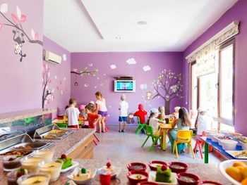 В числе удобств отеля Club Turan Prince World — специальный детский ресторан, мини-зоопарк и игровая площадка. Для детей также организуют уроки оригами, кулинарные курсы и занятия творчеством, включая изготовление поделок. Помимо этого, юным гостям предложат игры-головоломки.