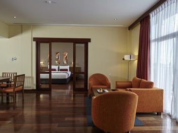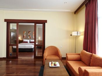 Просторные номера оснащены кондиционером, обставлены классической деревянной мебелью, подключено спутниковое телевидение. В числе удобств — сейф и мини-бар. В собственных ванных комнатах установлен душ с горячей/холодной водой и предоставляется фен.