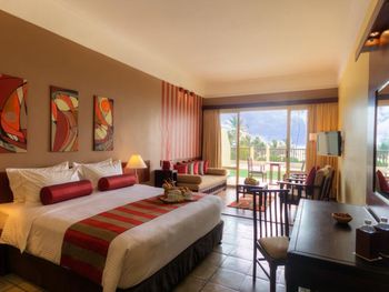 Нам очень не повезло с номерами. Бронировали два номера. Один номер был более менее нормальным, в нем проживали дети. А вот нам с супругом с номером не повезло совсем. В номере стоял запах сырости, повсюду была плесень. Влажность присутствовала везде, пол и стены были покрыты конденсатом. В кровати белье, подушки и одеяло были влажными. И не слушайте, если вас будут уверять, что нужно обязательно закрыть окно на балкон. Это все не правда. Видимо проблема с вентиляцией. При заселении мы видели, что во многие номера приоткрыты двери, скорее всего там проветривают от запаха сырости и плесени. Мы посетили 9 отелей по всему острову, такой проблемы нигде не было. После посещения ресепшена нам предложили поменять номер. Сначала предложили соседний, там было все тоже самое. Номера на втором этаже с видом на море. Мы отказались. В результате предложили первый этаж без вида на море. Согласились остаться в нём, так как было уже 11 часов вечера и очень хотелось спать. От отеля с пятью звёздами мы такого не ожидали((( Изначально планировали продлить номер на следующий день до вечера, но передумали. Может быть в отеле и есть другие хорошие номера, но нам не повезло.