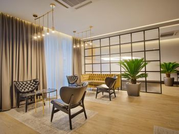 Отличный интерьер гостиницы - прекрасная входная группа, удобная лестница, лифт. Прекрасное помещение кафе/ресторан. Очень хорошие завтраки. В номерах Комфортные красивые террасы. Номера оборудованы новейшим оборудованием для комфортного проживания - управление кондиционером и прочими удобствами собрано в единый пульт. Все коммунальные услуги на высшем уровне.