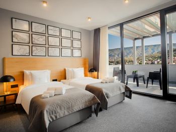 Очень приятный отель. Останавливались всего на 1 день, нам все понравилось. На завтрак каждый нашел, что съесть. Есть собственная парковка, что важно. В нашем номере была огромная терраса с лежаками и стульями.