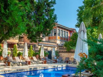 Старый фонд. Гостиница реконструирована. Номера находятся над рестораном. Вечером бывает шумно. Но терпимо. Бассейн совсем маленький. Вода в нем было сильно наполнена химией и сильно горячая. Прям вообще. Не приятно было то что посидев в ресторане и выпив кружечку пива. Попросили стакан турецкого чая. В Турции чай дают как комплимент - чаще всего бесплатно. Ну или максимум за 1-3лиры. Были удивлены что чашка чая в счете была 16 лир. Вроде не те деньги. Но было неприятно. Развод просто на ровном месте. Кондиционер в номере еле холодил. Было жарко. И в день выезда выключили воду на несколько часов. И также несмотря на это не смогли продлить номер. Мылись перед выездом за 30 минут до выезда.