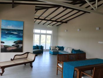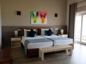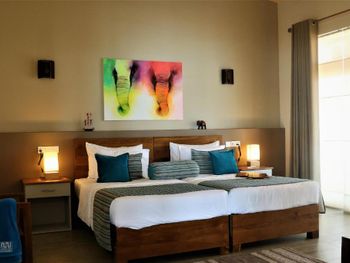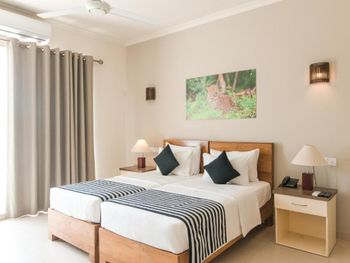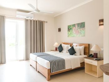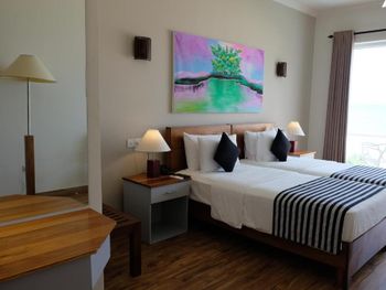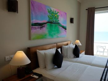 Персонал обслуживающий не очень приятный. В какой-то момент принесли откровенно рваные полотенца. У нас не был подключен холодильник в номере (холодильник в нише, самостоятельно выковыривать его оттуда не стали), пришли , включили в розетку и явно ожидали за это чаевые. Когда ты в номере, а они пришли убирать - будут стучать. Вечером стучали типа чай-кофе. Пришлось просто повесить табличку "не беспокоить" на все время кроме когда уходили. Завтраки однообразные. Крокеты картофельные, сосиски. Несъедобный омлет. Рис и лапша. Фрукты, хлопья. Чай-кофе. Если живешь на втором этаже - в период с 12 до 15 начинается уборка 3го этажа и это означает сильный шум тяжелой мебели которую двигают. Ее же двигают жильцы, которые собираются на веранде днем и вечером. Лучше брать третий этаж, тем более если бронишь через ресепшен - сдают комнаты по раздельности на 3 этаже. На мой взгляд цена-качество не соответствует в целом но это такая особенность шриланки, все что типа "европейского" уровня (хотя до европы оно конечно не дотягивает) стоит неоправданно дорого. Но по сравнению со "шриланка стайл" это конечно шикарные условия.
