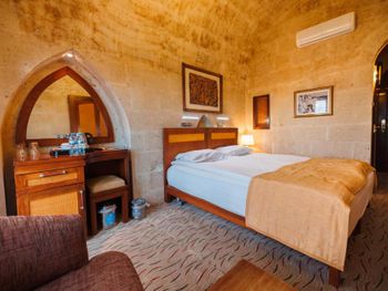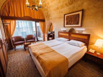 Пишут, что это первый пещерный отель в Кападокии. Но, по сути комнаты не пещерные, обычные современные комнаты с каменными стенами и каменным купольным потолком. Поэтому если вы хотите пожить именно в настоящем пещерном номере - этот отель совсем не то, что вам надо, несмотря на название. Но, лично нам такое исполнение комнат понравилось!!!, жить в настоящем пещерном отеле специфическое удовольствие (мы попробовали один раз пожить в настоящем пещерном номере и хватит)))).