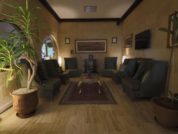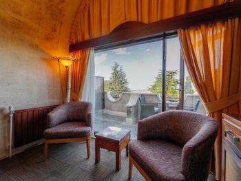 Прекрасный отель! Потрясающие пейзажи! Восходы и закаты солнца среди скал это нечто. Персонал внимательный, вежливый, но не владеет русским языком). Предварительно с нами связалась по WhatsApp очаровательная Gulcan, уточнила про трансфер, предложила услуги по заказу полета на воздушном шаре, мы все обсудили, заказали. Встретили в аэропорту вовремя, заселили быстро, оплату можно произвести картой, но лучше иметь турецкие лиры и евро, так как курс не очень выгодный. В номере нас ждал комплимент от отеля - тарелка фруктов, очень приятно и актуально, приехали вечером и очень кстати было полакомиться) также в номере было две бутылочки воды, чай, кофе, сахар. В целом все соответствовало описанию - тапочки, полотенца, гигиенические принадлежности для душа, единственное были указаны халаты, но их не оказалось. Хорошо что их наличие было не принципиальным. Первым же утром около 4х часов нас забрали на микроавтобусе из отеля и привезли на площадку, откуда взлетают шары. Мы были в восторге! Брали еще поездку на лошадях на другой день, всем довольны. В общем спасибо огромное за организацию нашего досуга в Каппадокии))) Виды потрясающие как с собственного балкона, так и со смотровой площадки перед отелем и из ресторана!! Если не хотите сами летать, то каждое утро можете наблюдать за множеством шаров прямо из отеля. Мы остались очень довольны. Завтраки разнообразные, по типу шведского стола, много фруктов, овощей, сыров. Ужины не брали, просто вечером выходили в город и ужинали в различных местных ресторанчиках. Это занимало минут пять ходьбы от отеля к кольцевой, где и сосредоточены магазинчики, ресторанчики) Прогулялись до замка Учхисар, поднялись до его вершины и понаблюдали потрясающий закат. Вход в замок 20 лир. После освобождения номера мы расположились на просторных диванчиках около ресепшена в ожидании трансфера в аэропорт, где нам было предложены чай и кофе) С удовольствием вернемся еще раз в этот отель, где чувствуешь себя желанным гостем!