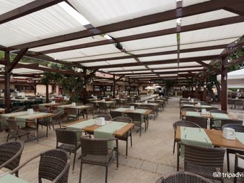 Отель: Приятная территория, вся в растениях и деревьях, красивое озеленение. Некоторые корпуса стоят очень плотно друг к другу, практически окна в окна. Будьте аккуратнее при выборе номера. Территория вроде бы большая, но все стоит очень плотно, из-за этого ощущается, что все друг у друга на головах. Номер: Мы брали стандартный номер, на втором этаже, так как предыдущие отзывы говорили о том, что часто на первом этаже может быть запах затхлости и влажность из-за полива растений и газонов. Ощутить это на себе, к счастью, не удалось, но поливают тут все обильно. Старайтесь выбирать солнечную сторону у номера. Номер просторный, достаточно большая ванная. Ремонт хороший, нет ощущения старости и поношенного интерьера. Из минусов: нет кондиционера для волос (только шампунь и гель для душа), нет чайника и всего к нему (чай, кофе и тд). Мини-бар наполняют один раз в день заезда. Дальше не будут приносить ничего, даже воду нам не ставили, носили сами из бара и ресторана. Неудобные подушки, очень жёсткие и старые. Ресторан/Питание Очень плохое питание, низкое качество продуктов, очень мало еды для детей, нормальных супов и тд. Все очень солёное, рыба мелкая, мясо жесткое, фрукты зелёные, недоспелые. Очень большой ассортимент фастфуда, но нормальной еды практически нет. Грязные стаканы в ресторане, грязные приборы. В основном ресторане заявлен детский ресторан, но он не работает, нормального здорового питания для детей практически нет. Пляж/море: Пляж с очень мелкой галькой, практически как песок, много тентов, можно укрыться от солнца. Из минусов: вход в море местами каменистый, неудобно заходить. Пару дней было очень грязное море, невозможно было плавать, все в мелком мусоре и пластике. Пляж плохо убирают, много бытовых отходов (стаканчики, бутылки, использованные маски и тд). Анимация/развлечения: Есть детский клуб, работает с перерывами в течение дня. Хорошие детские аниматоры.
