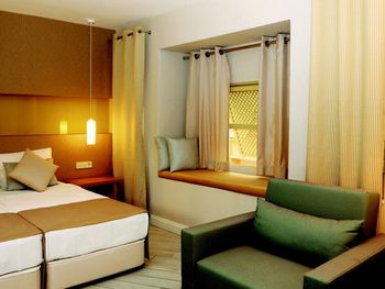 Очень маленькие номера, очень много народу. Если убрать хотя бы 25 процентов, будет намного лучше. Дают одно полотенце на человека. Я отдыхала одна и так как я предпочитаю комфорт и тишину, то забронировала и оплатила трёхместный шумоизолированный номер, который стоит дороже, чем обычный трёхместный номер, но тоже не очень большой, всего около 22 м2, но других предложений не было. Когда я приехала, мне предоставили стандартный шумный одноместный номер и сказали, что раз вы одна, то должны жить так, а в трехместном номере должны жить три человека и что у них вообще нет свободных номеров.... После долгих разговоров о том, что я заплатила за трёхместный номер и что он стоит в два раза дороже и что отель должен вернуть тогда деньги и тд..., мне предоставили номер в другой стороне, где была чуть больше кровать и самое главное он был тихим. Ну и остальное: на завтрак, обед и ужин не комфортно, столы стоят слишком близко друг к другу. Чтобы обеспечить лежак в тени, то надо идти на пляж в 7 утра, так как половина лежаков находятся на солнце. Подушки жесткие, мягких в отеле нет. Халатов в номере нет, бальзама для тела, кондиционера для волос, ватных принадлежностей в номере нет. Но может быть, это для Турции нормально. Но правда все можно купить не выходя из отеля, так что это мелочи