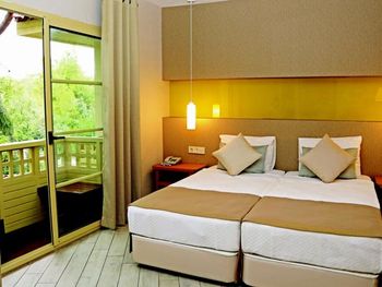 Очень зеленый отель. Удобен тем, что нет огромного здания с длинными коридорами и лифтами. Номера на первом этаже гораздо лучше - сразу выход на веранду и лужайку. Дочь была влюблена в аниматоров, скучает по девушке Саиде. Детям хорошо тем, что есть детский клуб, вечером дискотека. Мы довольны. Ездили в начале октября - в бархатный сезон. Но отель был полным.