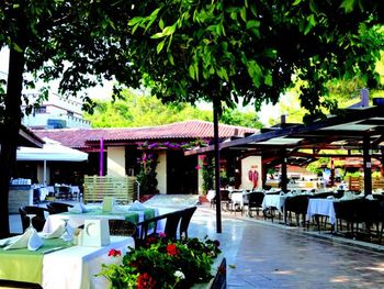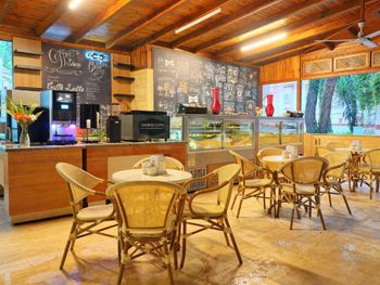 Территория отеля небольшая, но вся в зелени. Рядом остановка городского транспорта. При отеле есть трансфер в аэропорт, цены ниже чем в поселке. Персонал дружелюбен и готов решить все ваши проблемы,