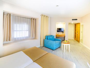 При приезде поселили в номер с муравьями на кроватях, грибком в ванной комнате. На детской простынке были пятна крови. Сняли простыню - под ней грязный матрас, двухэтажная кровать грязная с паутиной. На следующий день переселили. Номер тянет максимум на три звезды. При заезде пришлось отдельно просить помыть унитаз, так как он был грязный, но утверждали, что это не отмывается. Только после того, как я попросила мочалку, чтоб самой попробовать оттереть, унитаз помыли. Постель не меняли пока не попросили. Полотенца меняют через одно: два поменяли, два - нет (специально проверяла). Полы толком не моют. В новом номере не хватало вешалок. Дважды просила, но их так и не принесли. Еды много, но если честно, выбрать особо было нечего: большинство еды просто не вкусное. Мясного много, но почти все сделано из одного фарша, который никому из нашей семьи не понравился. Сладостей много - но все они однотипные. Нет голодными не останетесь, но ожидания не оправдались. Чистота посуды вызывает сомнения. Когда приходишь не первым садишься за столики с грязными скатертями. На общих салфетницах грязь от рук предыдущих пользователей. Когда мы отдыхали, в отеле распространялся какой-то вирус: многие отдыхающие кашляли. Всей семьей переболели. Удивительно было, что в отеле не дают утюг, а все надо сдавать на глажку за деньги. Стоимость глажки от 50 центов (погладить носовой платок) до 3,5 долларов. Вход в море, не смотря на насыпной песок, не идеален. Говорят, что это лучший пляж в районе, но не стоит ожидать мелкого песка и в воду надо входить аккуратно.
