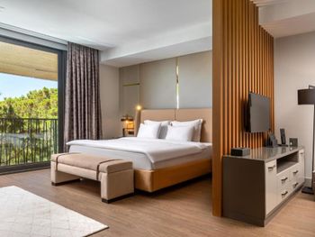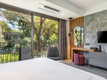 Отдыхала с детьми в этом прекрасном отеле, небольшая очень красивая территория, чисто, ухоженно, приветливый и отзывчивый персонал, гармоничное расположение всех объектов на очень небольшой территории, 2 ресторана, тренажерный зал, небольшой, но достаточный по размеру бассейн с «лягушатником», множество лежаков и зонтиков, вместо привычных полотенец симпатичные покрывала, которые отлично сохнут. Всегда удобно располагались в ресторане, у бассейна или около моря. Классные, вкусные и разнообразные завтраки. Весьма обширное меню в ресторане. Цены, на мой взгляд, несколько завышены. Отдельный комплимент номерам и чистоте в них. Умная планировка, простор, втроем в одном номере мы не чувствовали себя стесненными.